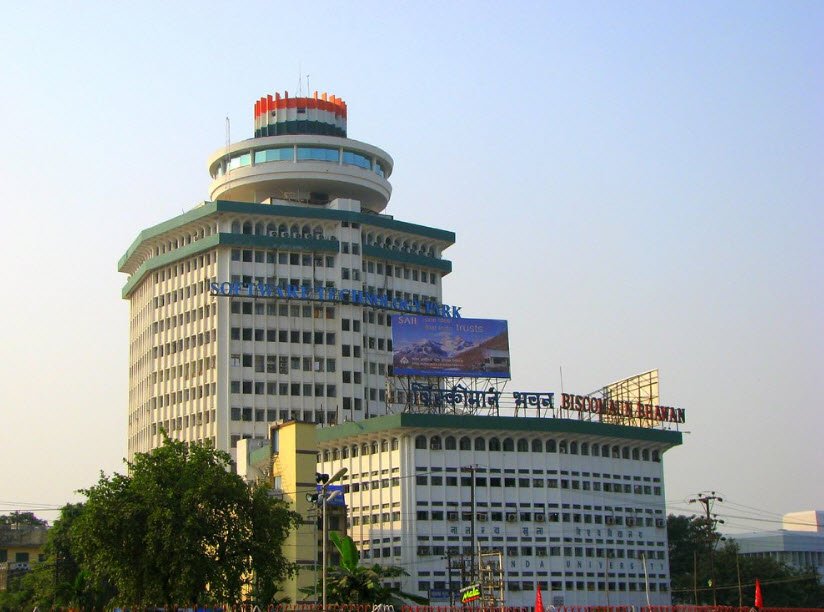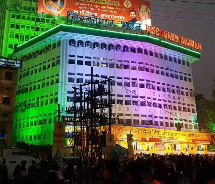 Biscomaun Bhawan is a prominent public building in Patna, Bihar, housing many administrative offices of the Bihar government, the Government of India, and some private company offices. It also hosts the Nalanda Open University and is known for its revolving restaurant, Pind Balluchi, and a software park, making it a unique landmark in Bihar and Eastern India.