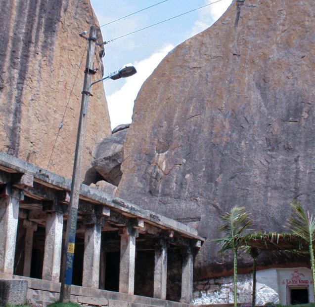 One of the main attractions at Chandravalli is the Chandravalli Cave Temple, also known as Ankali Mutt. The cave temple is semilunar in shape and is located between two giant monolithic rocks. It is believed that saints from Ankalagi (Belgaum) came here for meditation. The site also features a rock inscription of Mayurasharma, the founder of the Kadamba dynasty.
