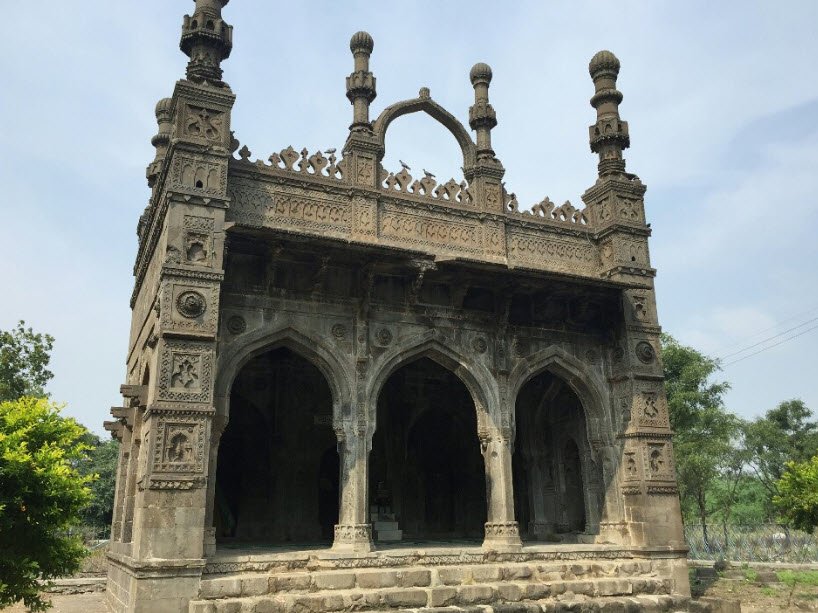 The Damdi Masjid in Ahmednagar, Maharashtra, is a historic mosque built in 1568 during the reign of the Ahmednagar Sultanate. It is designated as a monument of national importance. The mosque is known for its stunning architecture, featuring three pointed arches leading into the prayer hall, square pylons at the corners, and slender minarets.