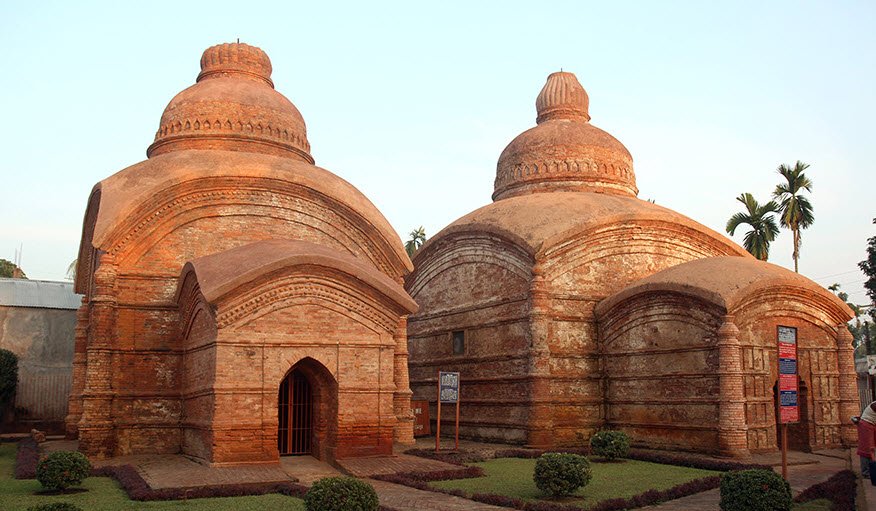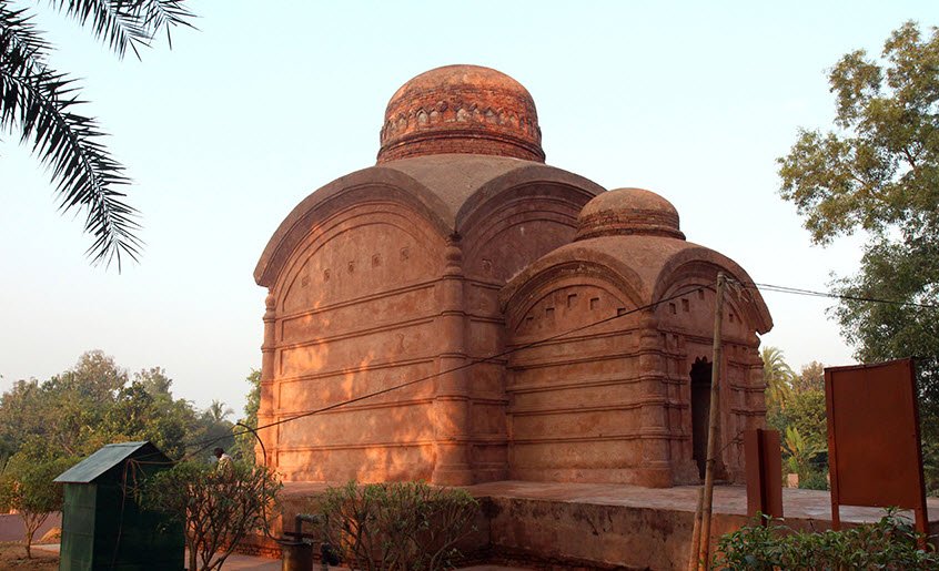 The architecture of these temples resembles other contemporary temples of Tripura, with unique features such as the absence of stupas on the topmost parts. The core chambers are marked by the presence of pitcher-headed female forms as buttresses, and the temple in the middle has a semi-circular core chamber with a beautifully crafted lotus crown.