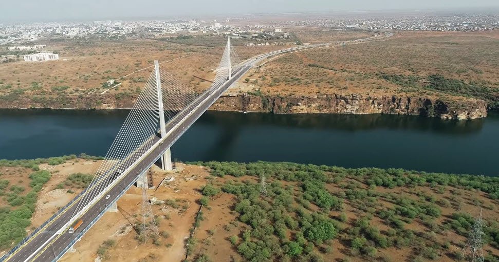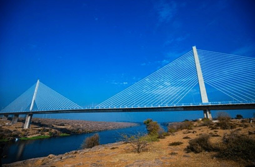 The Kota Chambal Bridge, also known as the Kota Hanging Bridge, is a cable-stayed bridge located in Kota, Rajasthan. The bridge crosses the Chambal River and is part of the Kota Bypass. It was inaugurated by Prime Minister Narendra Modi on August 29, 2017.