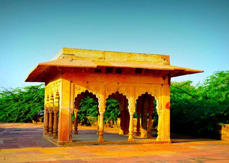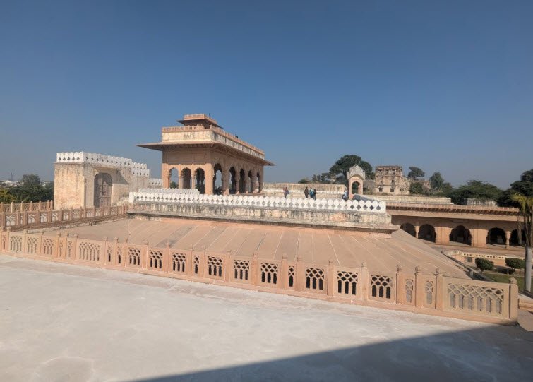 The Jawahar Burj is adorned with frescoes and an inscribed iron pillar bearing the genealogy of Bharatpur rulers. It also served as the coronation site for the Jat rulers of Bharatpur.