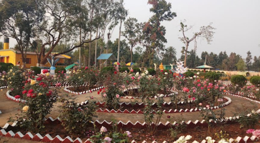 Krish Garden in Jhargram, West Bengal, is a spacious park spread over about 10 acres, located roughly 10 km from Jhargram town. It is a peaceful and family-friendly destination featuring beautiful sculptures, a variety of flowering plants including roses, birdlife, and aquariums that make it appealing to visitors of all ages.