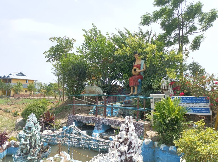 It also showcases the traditional lifestyles of the ancient Meiteis, with numerous sculptures, including statues of Lourembam Khongnangthaba and six other divine maichous. The park has a children's area, a multipurpose farm, and beautifully landscaped gardens.