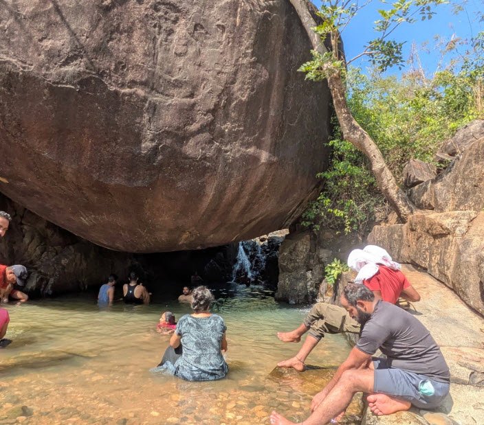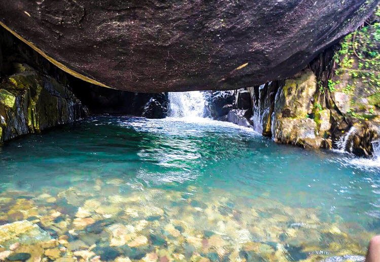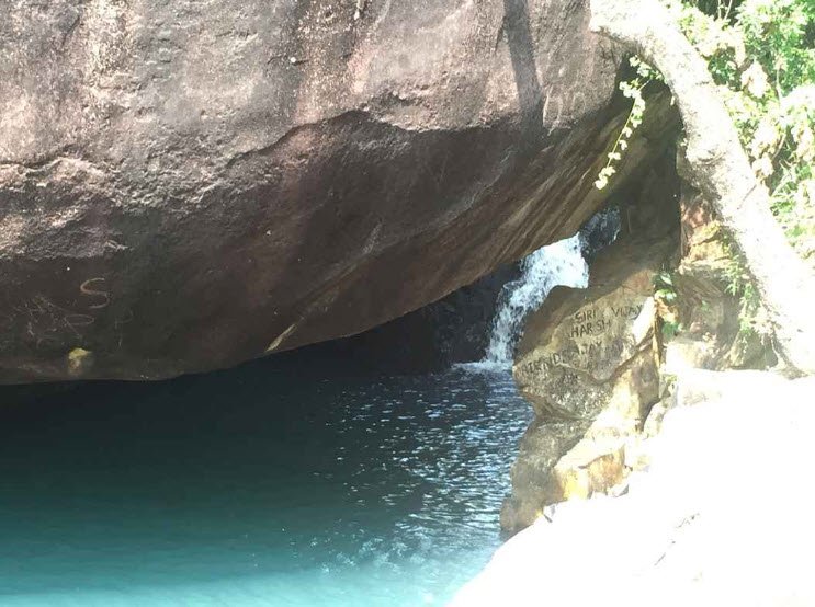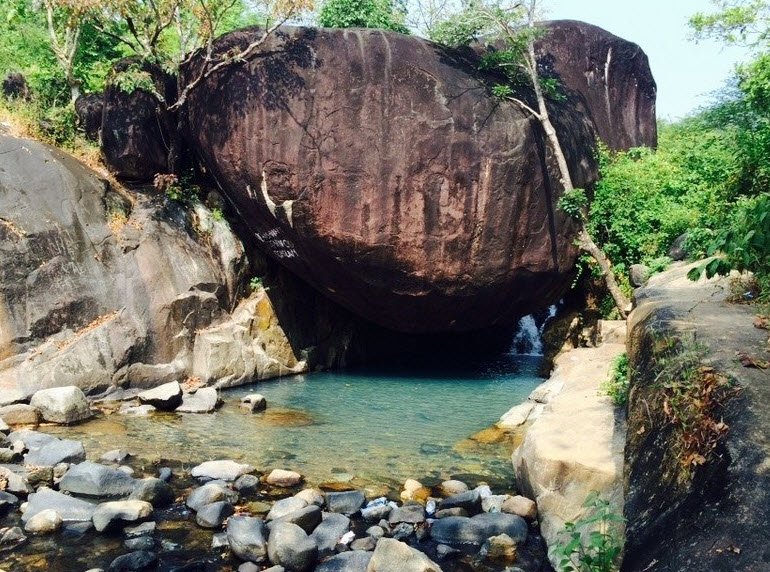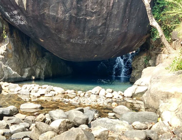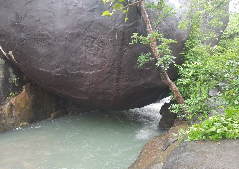 Nagarmadi Water Falls, also known as Chendia Falls, is a charming waterfall located near Karwar in Uttara Kannada district, Karnataka. The waterfall is unique as it cascades from a height of just about 10 feet and passes underneath a huge rock, creating a small cave-like structure1. This makes it a special spot where visitors can enjoy swimming in the pool at the bottom of the falls.