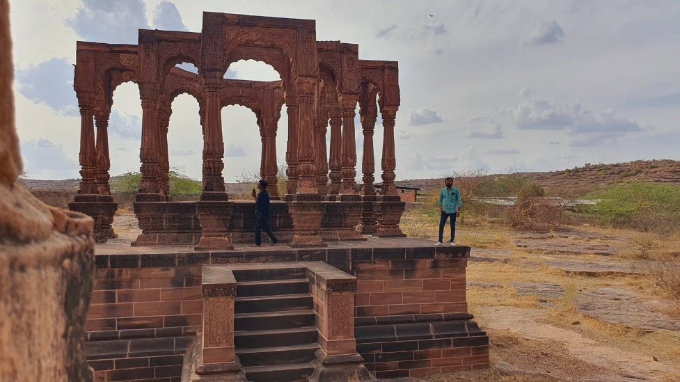 The site is also home to monuments dedicated to notable Marwar rulers such as Rao Chunada, Rao Ranmal, and Rao Ganga. Among these, the cenotaph of Maharani Surya Kangar Ji, daughter of Naresh Pratap Singh Ji of Jaipur, is particularly striking, featuring intricate carvings and a footprint inscription within a marble structure.