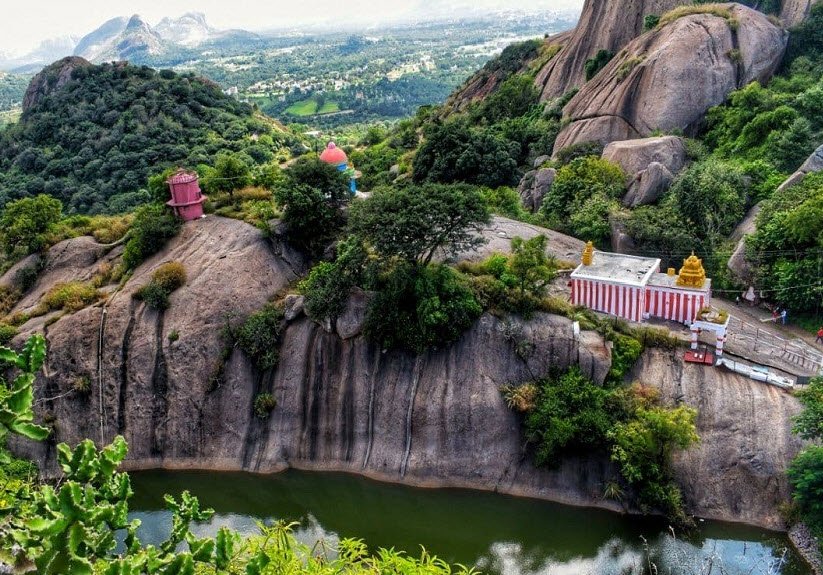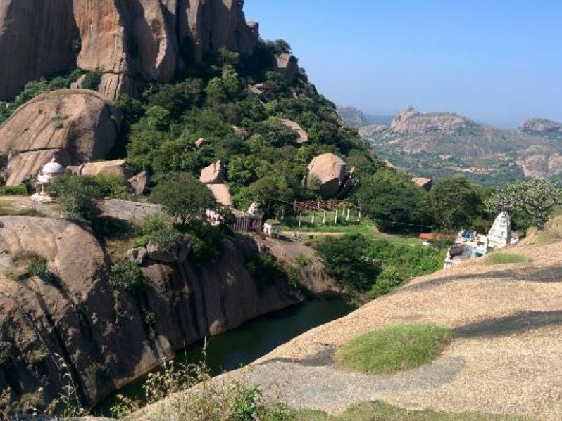 The hill is also home to several small temples dedicated to Lord Rama, Hanuman, Ganesh, and Shiva Parvati. According to Hindu mythology, the idol of Lord Rama was established by Sugreeva after Lord Rama helped him defeat the demon Sukasura. The hill is also known for its Sita's Pond, a mysterious pond with unknown depths.