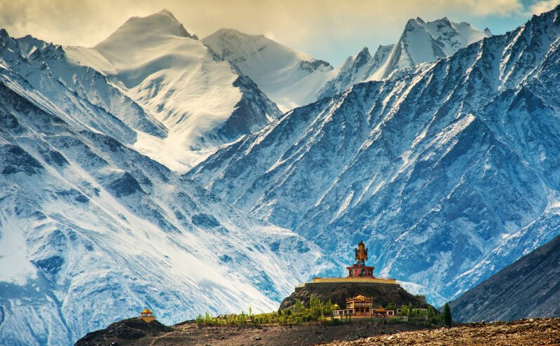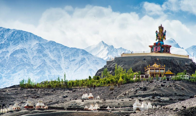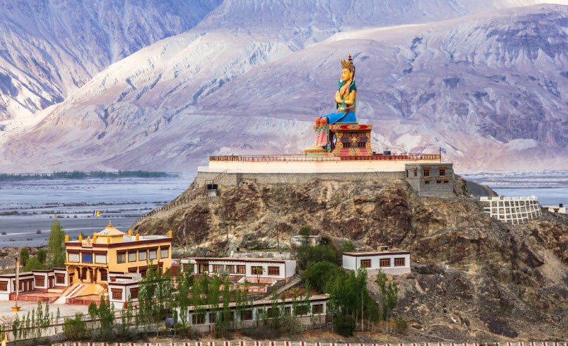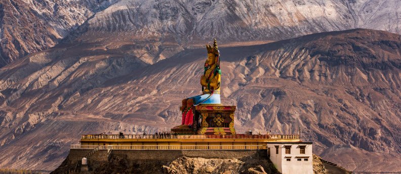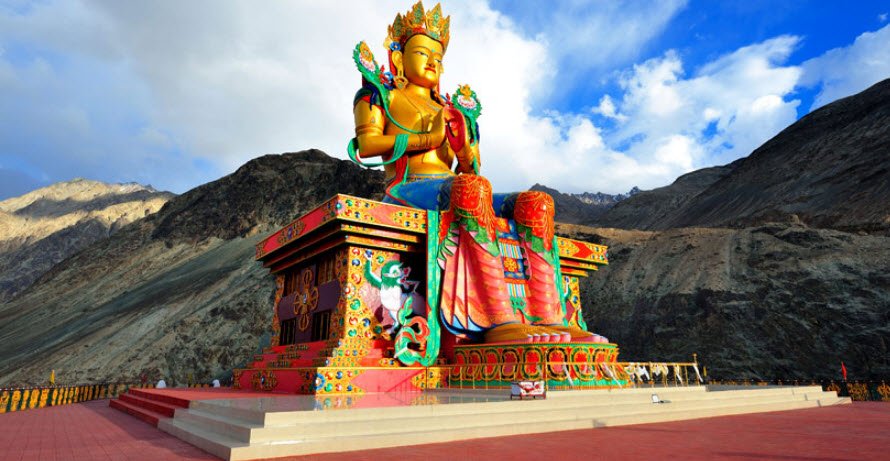 Red Maitreya Temple is located in Leh, Ladakh.