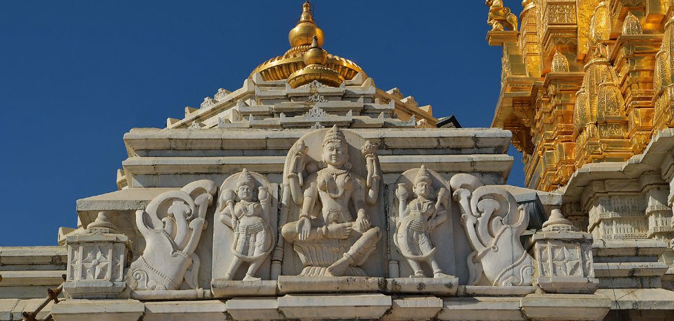 It is said that the heart of Goddess Sati fell at this location, making it a sacred Shaktipeeth. The temple's architecture is a beautiful blend of simplicity and grandeur, constructed from white marble with gold accents. Instead of an idol, the main deity worshipped here is the Sri Yantra, a symbol of cosmic unity. The temple grounds include an open square where ceremonial sacrifices are performed, adding to the spiritual ambiance.