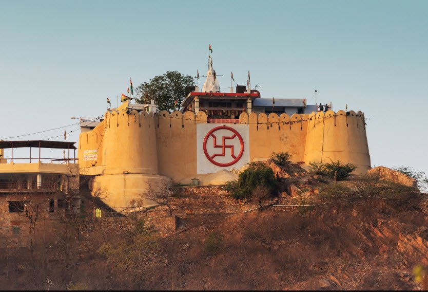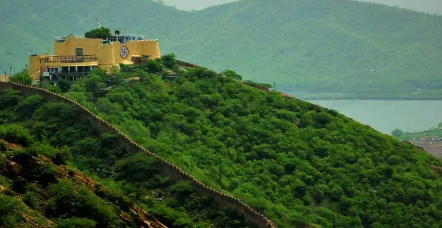 The Shri Garh Ganesh Ji Temple, also known as Garh Ganesh Mandir, is an 18th-century temple dedicated to Lord Ganesh, located on the hills near Nahargarh Fort and Jaigarh Fort in Jaipur, Rajasthan. The temple is unique because it houses a statue of Lord Ganesh in the form of a child, known as Vigra Purushakriti, without a trunk.