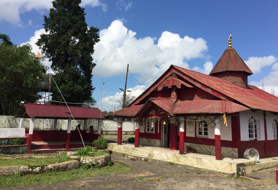 The temple has a unique blend of Hindu and ancient Khasi traditions. During Durga Puja, the local chieftain or Syiem sacrifices goats, and a banana plant is dressed up and worshipped as the Goddess. At the end of the festivities, the plant is ceremoniously immersed in the Myntdu River.