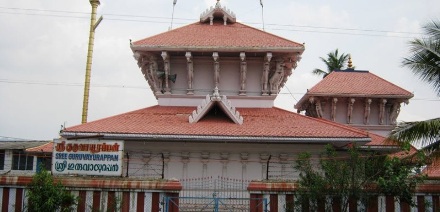 Modeled after the famous Guruvayur Temple, it maintains a traditional Kerala architectural style with mural artwork on the walls.