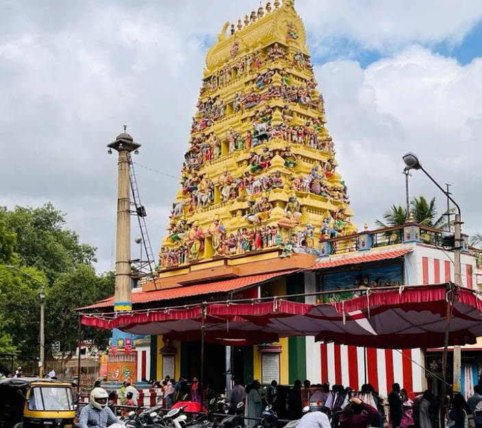 The Sri Lakshmi Venkataramanaswamy Temple is a revered Hindu temple located on KRS Road, Gokulam 1st Stage, Vani Vilas Mohalla, Mysuru, Karnataka. Dedicated to Lord Venkataramana (a form of Lord Vishnu) and Goddess Lakshmi, the temple is known for its traditional South Indian architecture, featuring intricate carvings and detailed sculptures.