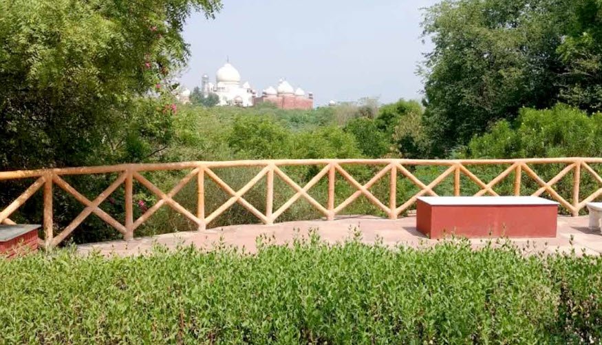 The forest is spread over 70 hectares and features vibrant pathways, rock gardens, ponds, and gazebo structures. Visitors can enjoy the lush greenery, spot various wildlife such as butterflies, birds, and peacocks, and even catch a glimpse of the Taj Mahal from certain points within the park.