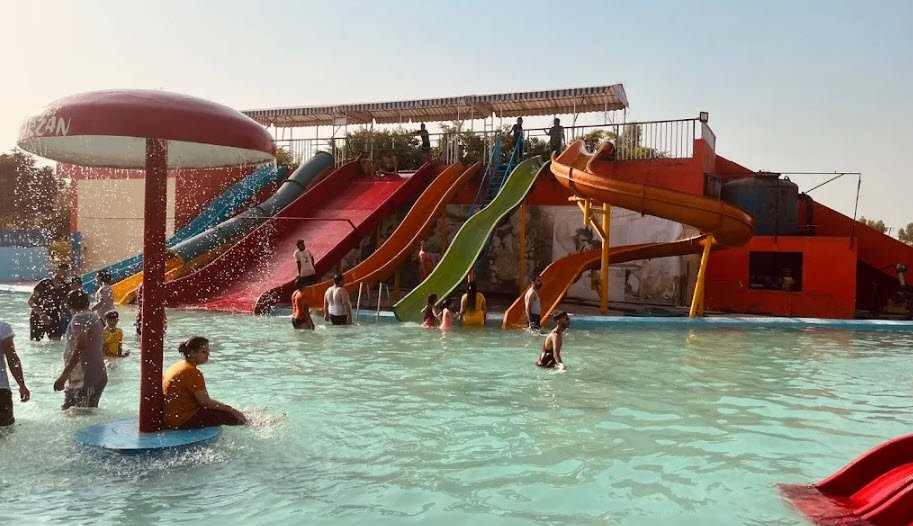 The park features large water slides, a swimming pool, a rain dance floor, and a kids' zone. It's a great place for a day out with family and friends, providing plenty of entertainment and fun activities. The park also has food outlets, including P.S Dhaba, where you can enjoy homely food.