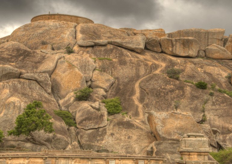 It also houses 14 major temples, including the Hidimbeshwara Temple, Ekanatheshwari Temple, and Sampige Siddeshwara Temple. The fort’s architecture and water harvesting system reflect the ingenuity of its builders, ensuring a continuous water supply despite its elevated location.